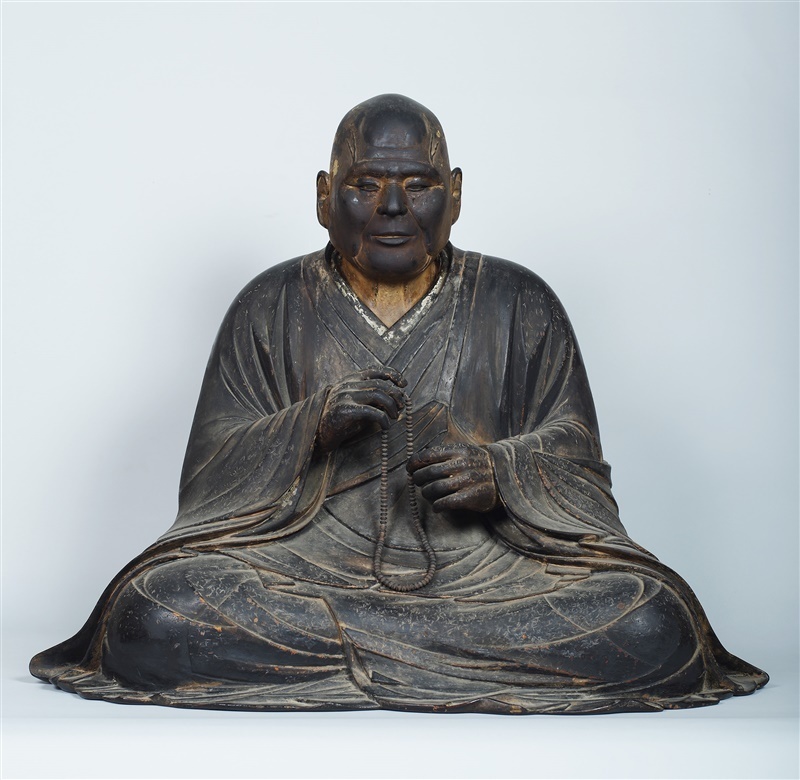「聖光上人坐像」は福岡県久留米市の大本山善導寺の所蔵。ヒノキの寄せ木造りで、現在の北九州市に生まれ、九州を拠点に法然の教えを伝えることに半生をささげた聖光の強い意志を感じさせる。