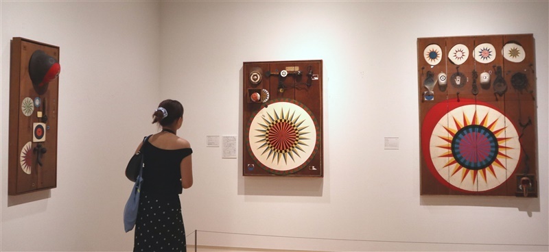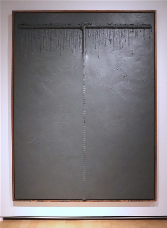 「反芸術」を掲げた美術集団「九州派」の主要メンバーとしてアスファルトなど身近な材料を用いた前衛美術、日本ポップアートの先駆けとして国外でも注目された「ルーレット」シリーズ、独特の絵肌の大型絵画…。作風の振れ幅に驚きつつ、花田さんは「“もの”から平面へ」という流れに着目し、画業全体を見渡す2章24点を構成した。