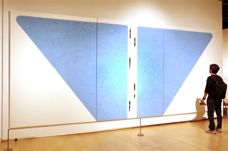 大型絵画も、ドロドロとした絵肌に棒を封じ込めた「天動説 五」(83年)から、サラリと透明度の高い「春風 一」(2010年)へと飛躍した。山本さんは「沈んでいく感じから浮上していくイメージで、地上で格闘していた重力から解き放たれたのではないか」。原田さんは「絵を描きたくても素朴にできない社会状況の中、それでも自分は絵描きだという壮大な旅としての全体像がみてとれる」と初期から晩年にかけてのつながりを指摘した。