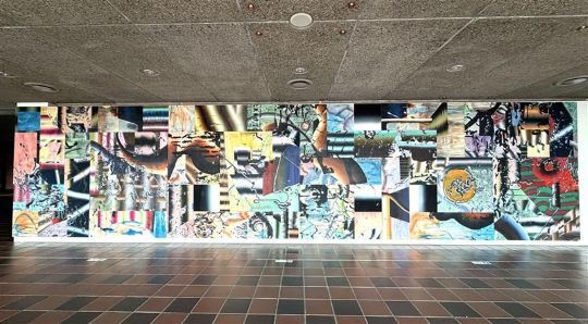 本展の目玉は、3年間にわたって展示される美術館ロビー壁画の公開制作だ。浦川さんが主題としたのは福岡という土地のアイデンティティー。大陸と本州のはざまで時代によって立ち位置を変化させてきた価値観の柔軟さを、組み替え可能な約50のパネルに分割して描くことで表現した。