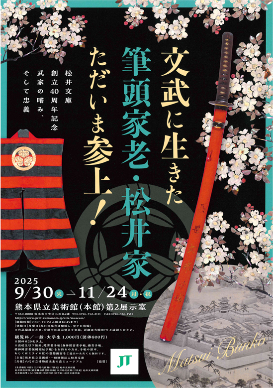 本展では、最新の調査・研究成果を踏まえ、忠義の家臣・松井家の歴史と華麗なる武家文化をご紹介します。