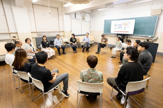 アート、伝統文化、プログラミング‥‥福岡のガスや不動産等、インフラを支える一企業でありながら、様々な文化活動を活発に行っている明治産業。2025年秋、新たに一般向けのアーティストの思考法に学ぶワークショップ体験会「CAW LAB:Collaborative Art Workshop LAB」をスタートし、演劇という手法を通じ社会的な実践を拡げています。