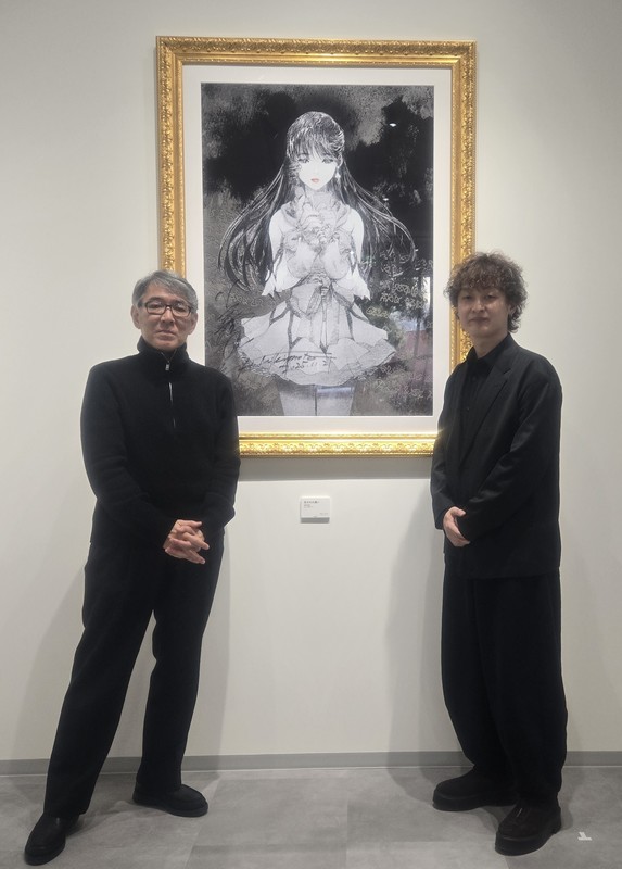 開幕に先立ち開かれた内覧会には美樹本晴彦氏も参加。本展のメインビジュアルとなった作品には直筆のサインが入れられた。