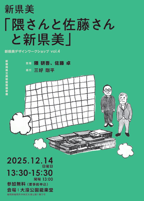次回のワークショップは、隈研吾さんによる最新の設計進捗情報の紹介のほか、新県美のシンボルマーク、サインデザイン等を手掛けるグラフィックデザイナー・佐藤卓さんに登場いただき、参加者のみなさんと一緒にデザインに関するディスカッションを行います。