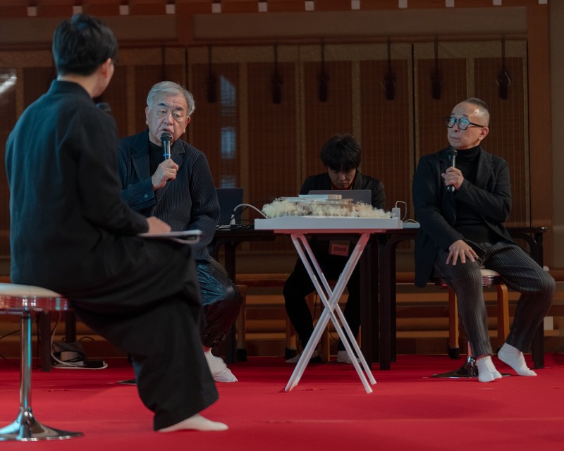 令和11(2029)年度に大濠公園南側に開館予定の新県立美術館。アートファンだけでなく、福岡県民から大きな期待が寄せられている新県美がどのように進むのかを考える「新県美デザインワークショップvol.4」が大濠公園能楽堂で行われました。ワークショップは同館を設計する国際的な建築家・隈研吾氏と、新県美のシンボルマークやサイン等を手がけるグラフィックデザイナー佐藤卓氏が登壇。新県美とデザインに関する議論が活発に行われました。
