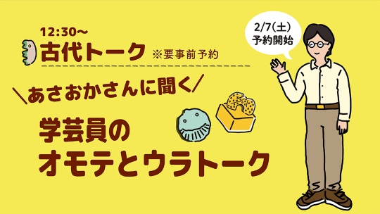 さらには、古代フェスならではのキッチンカーが出店するほか、特別展示室で開催している展覧会「魔法の歴史スコープ」(開催期間:2月21日~4月12日)の担当学芸員・朝岡俊也さんによる「古代トーク 学芸員のオモテとウラトーク」(12:30~、事前予約制)、そして、ちんどん鈴乃家さんのパフォーマンス等も実施。