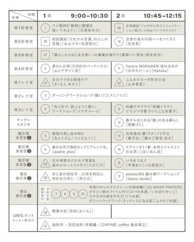 講座の多くは、事前予約制(一部、当日受付のものも有)。講座によって、抽選制と事前予約制(先着順)の2種類のお申込み方法があります。詳細は公式HP、または公式Instagramを確認、申込の上、会場を訪れてみてください。